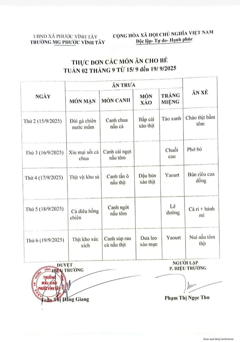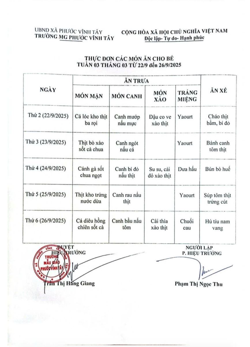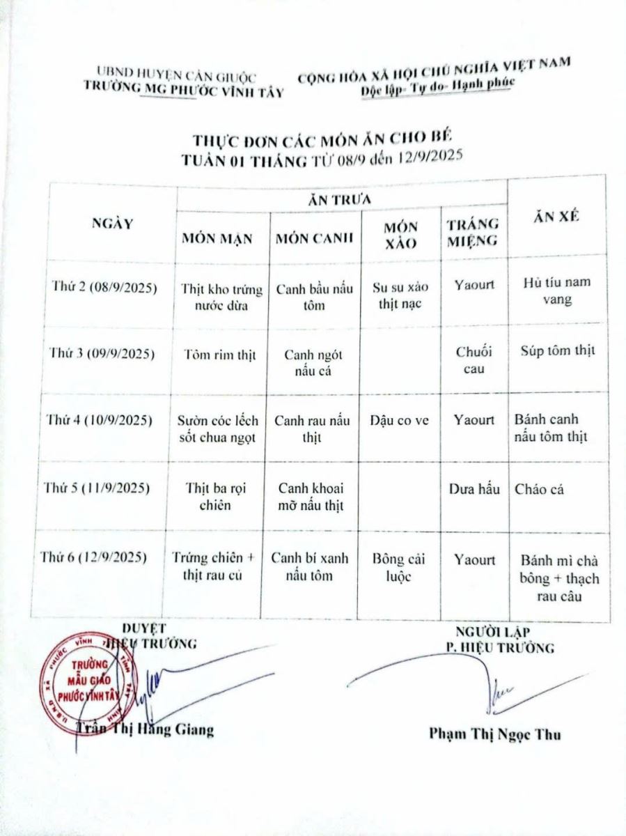 Thực đơn tháng 09/2025 (24/09/2025)