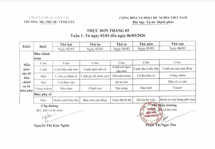 Thực đơn tháng 03/2026